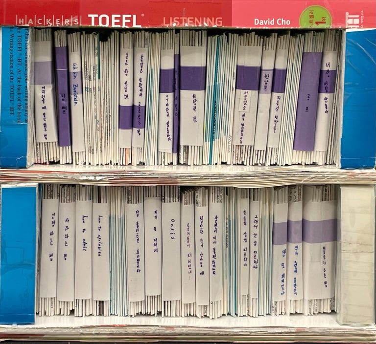 이 책장에 꽂힌 써지지 못한, 읽혀지지 못한 책들의 제목은 다음과 같다: 어지러울 때 정신 차리는 법, 망삘, ich bin Zweistein, 돈은 참 진실해, 좆같은 상황에서 교훈 찾는 법, 우아한거 필요없다, 너 죽고 나 살자, 허탕친 것, 천동설을 계속 써야하는 이유, 뒷담록, 지동설 반박론, 공포, 너랑 씨발 안놀아, 인정하는 법, 사과하는 법, how to admit, how to apologize, 잘 풀리는건 휴지뿐이라, 저거 또 저러네, Oasis, 물거품이 돼버렸네..., 될 만한 각이 안 나올 때, 살면서 지가 불편하겠지, 열심히 살면 피곤하다, 그래서 나는 늘 피곤하다, 쟨 또 왜 저럴까, 뭐가 그렇게 불행하니, 비슷한 척 하는 법